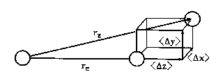 rg » re + <Dz> + (<Dx²> + <Dy²>)/2re (18b)Auch hier bedeutet Dz die Abweichung in Kernverbindungsrichtung, während Dx und Dy senkrechte Schwingungsbeiträge darstellen (vgl Abb. B.1). Während <Dx>² und <Dy>² ohne größere Fehler vernachlässigt werden können, stellen <Dx²> und <Dy²> bei genauen Messungen durchaus signifikante Größen dar.