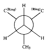 Da DMCHDO durch seine Größe schon einen erheblichen Rechenaufwand erfordert, wurde die interne Rotation der Methylgruppen "eingefroren". Dies erschien gerechtfertigt, da eine zuvor durchgeführte Analyse der Potentialhyperfläche bezüglich der Rotation der beiden Methylgruppen mit den zwei, oben angeführten, molecular-modelling-Programmen (SYBYL und DISCOVER/INSIGHT) Werte für die Rotationsbarriere von 17-20 kJ/mol vorausgesagt hatte. Es konnte also davon ausgegangen werden, daß sich die Methylgruppen im wesentlichen in den energetisch günstigsten Positionen befinden würden (vgl. Abb. C.2).