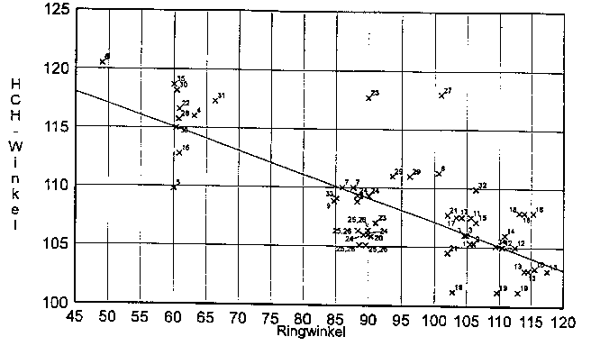 | Abb. E.7: Korrelation zwischen Ringwinkel und HCH-Winkel. |