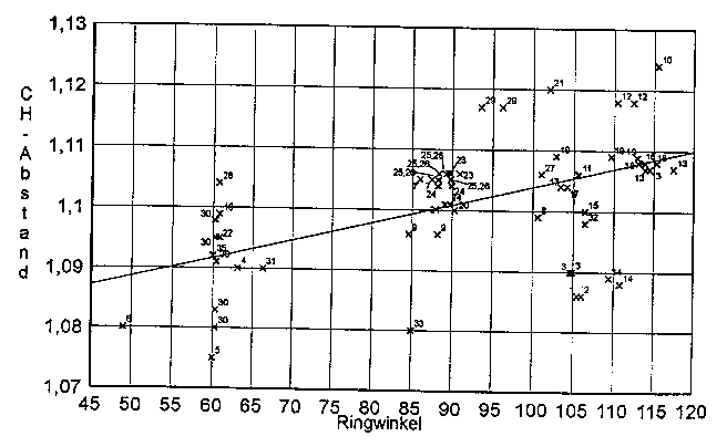 | Abb. E.8: Korrelation zwischen Ringwinkel und C-H-Abstand. |