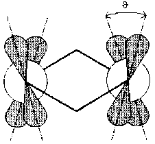 Verdrillung der p-Orbitale der Kohlenstoffatome C2 und C3 einerseits sowie C5 und