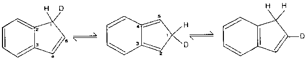 Abb.17a: Beispiel einer [1,5]-sigmatropen Wanderung. 1-Deutero-Inden kann sich in einer [1,5]-D-Wanderung in
