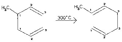 Abb.17b: Beispiel einer Cope-Umlagerung: 3-Methyl-1,5-hexadien wandelt sich bei 300 C in 1,5-Heptadien um (nach