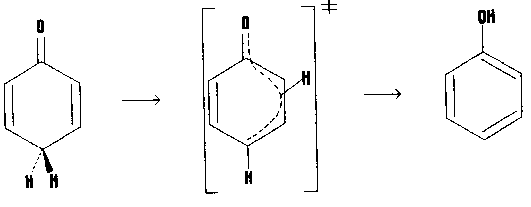 Ein solcher, hypothetischer, intramolekularer Tautomerisierungsmechanismus des Cyclohexadienons könnte nun
