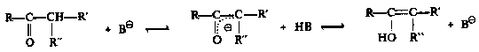 Die Mechanismen der Enolisierung im speziellen und der Tautomerisierung im allgemeinen sind folgende: Eine Base deprotoniert das Keton am a-Kohlenstoff (CH-Acidität) und bildet so das Enolat-Anion, welches