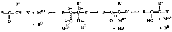 Abb.7: Metallionenkatalysierte Enolisierung Neben diesen Mechanismen werden in der Literatur noch Sonderfälle wie konzertiert basisch-saure und