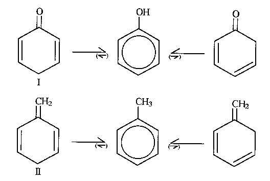 tautomeren Formen von Phenol beziehungsweise Toluol.