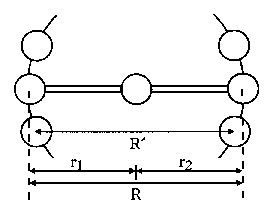 Wie bereits im theoretischen Teil angedeutet, tritt bei der Elektronenbeugung prinzipiell ein "shrinkage effect" auf. Da mit der Elektronenbeugung Abstände zwischen den Atomen bestimmt werden, erhält man für ein dreiatomiges Molekül, wie in Abb. E.11, drei Abstände: r1, r2 und R. Für ein starres, nichtschwingendes Molekül gilt dann r1 + r2 = R. Für ein knickschwingendes Molekül erhält man jedoch aufgrund der senkrechten Schwingungsanteile einen kürzeren Abstand R' und das Molekül scheint gewinkelt zu sein. Diesem Effekt kann man durch Einbeziehen der Schwingungsanteile Rechnung tragen. Mit dieser "shrinkage correction" wird dann eine korrekt lineare Struktur erhalten.